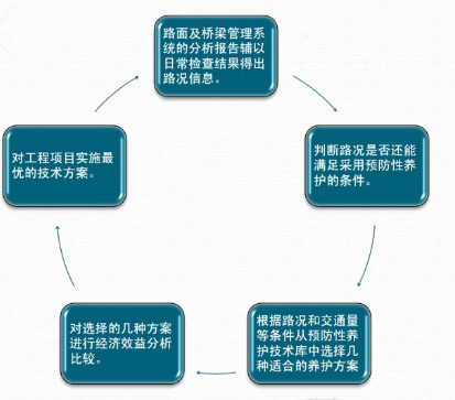 对已确定应进行预防性养护的路段,首先在准确确定路面主导损坏类型及其损坏程度分级的基础上,初选路面预防性养护技术方案,然后通过对各种技术因素的综合评判确定适合的预防性养护技术方案。